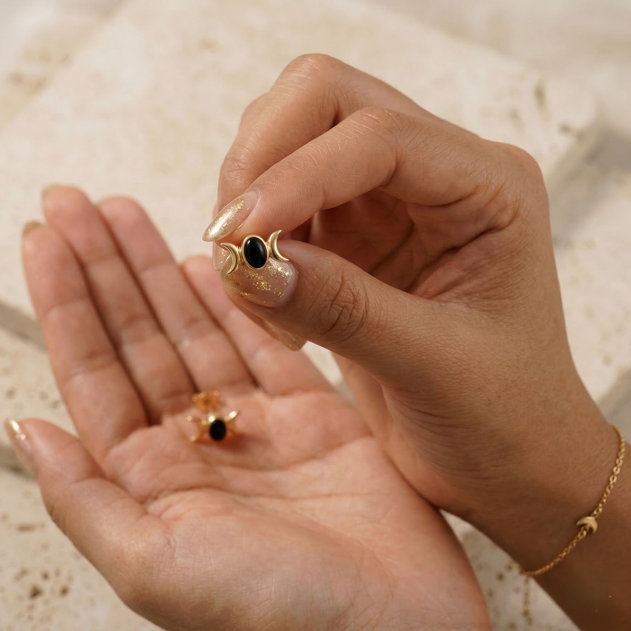Be the first to review “Celestial Onyx Moon Studs”