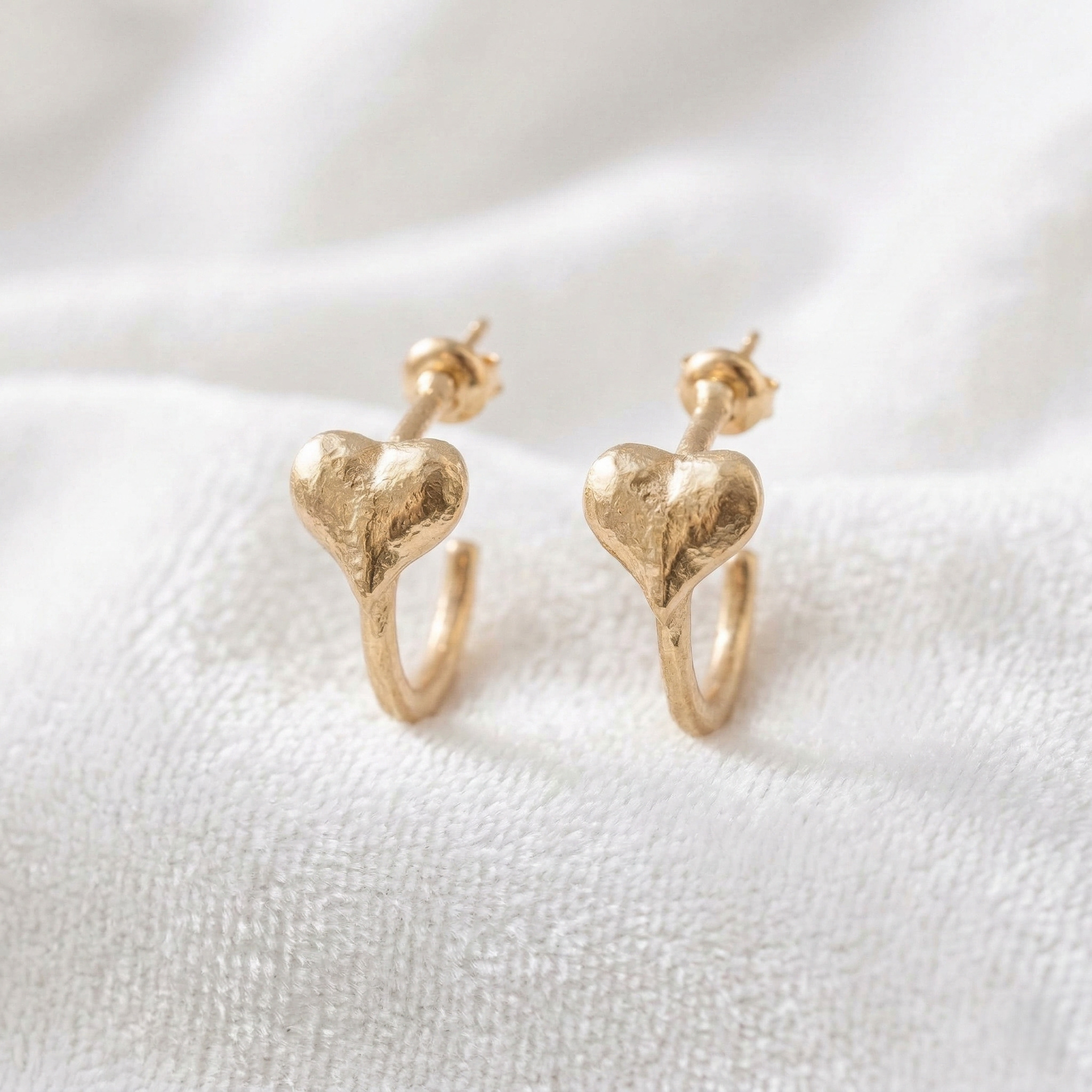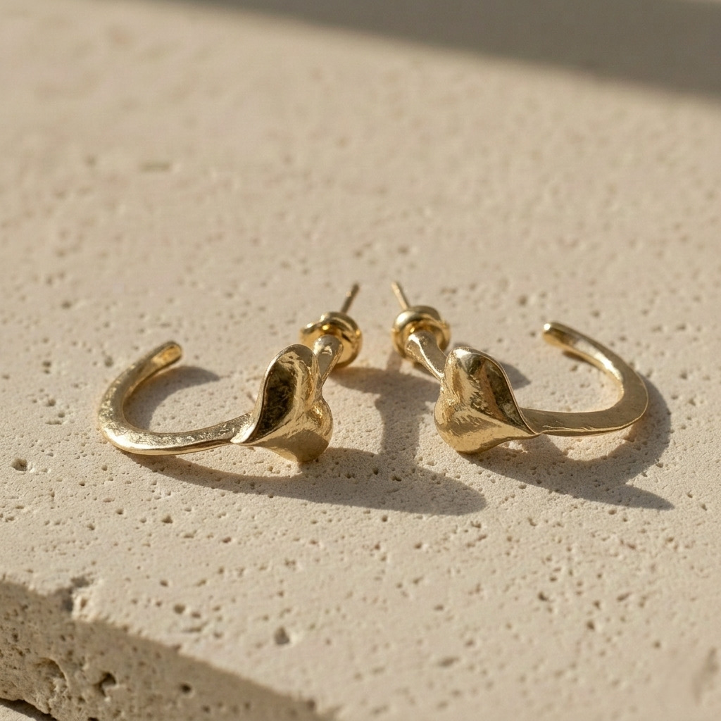 Beautiful heart and bird inspired hoop earrings with a smooth gold finish. A minimal yet stylish jewelry piece perfect for everyday wear.
