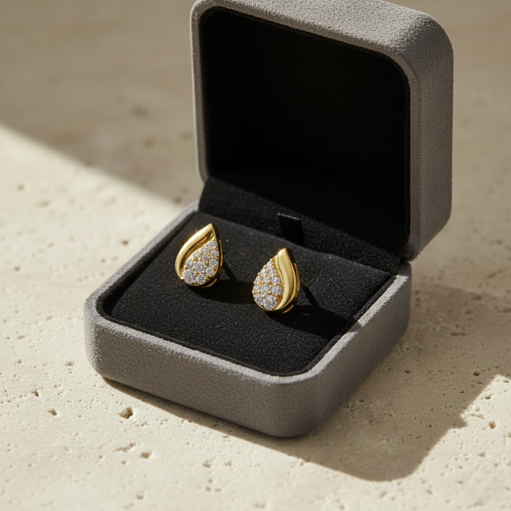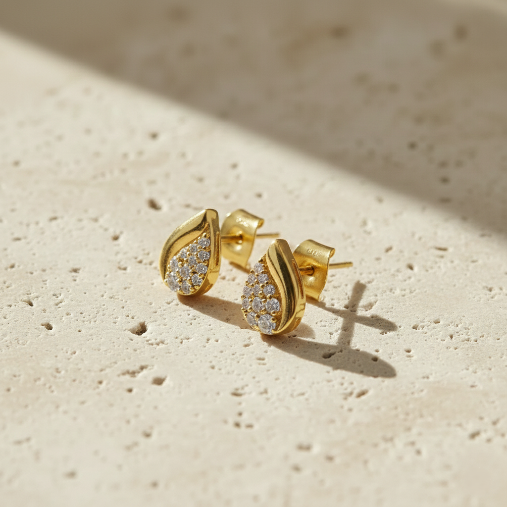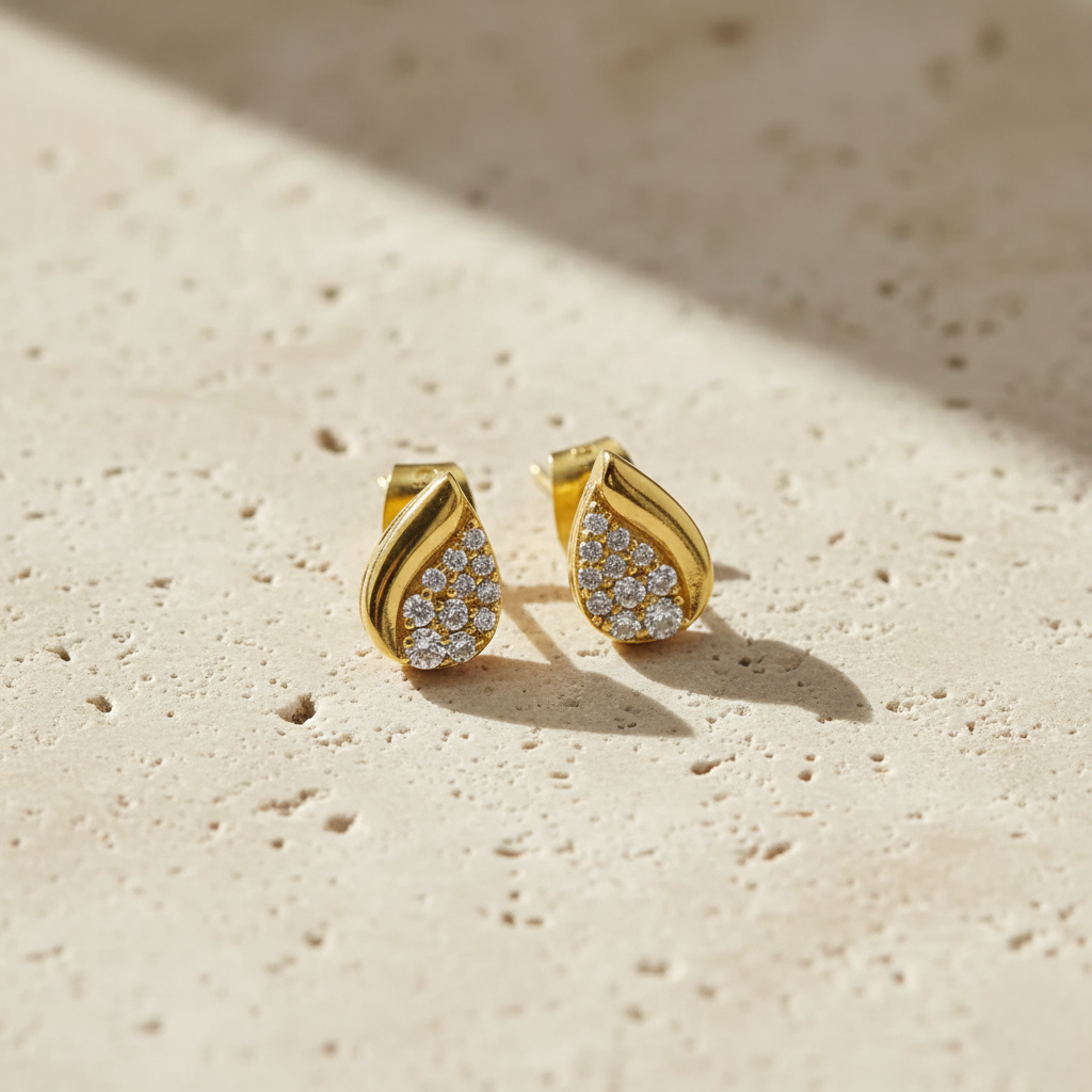 These gold-plated teardrop earrings feature sparkling CZ stones that add a luxurious shine. Lightweight, elegant, and perfect for daily wear or special occasions. A timeless pair ideal for gifting