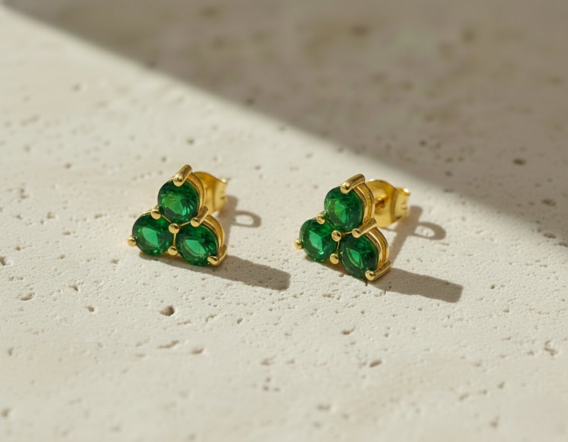 Beautiful gold-plated earrings crafted with triple green onyx stones in a chic cluster design. Lightweight, elegant, and perfect for daily wear, festive looks, and gifting. Adds a bold pop of natural gemstone shine.